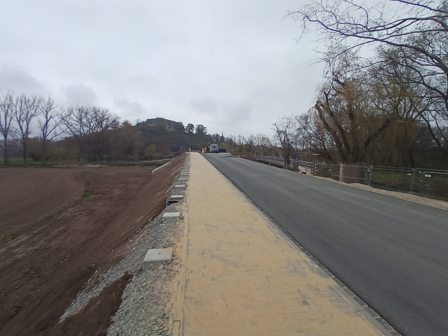 Sehen Sie die dunklen Bauteile an der Unterseite der Unstrutbrücke? Hier sind 12 Fledermausquartiere angebracht (die Mühlgrabenbrücke hat 6 Stück erhalten). Bei den Vorplanungen wurde die alte Brücke nach Brut- und Niststätten untersucht, und es wurden auch solche in Mauerfugen gefunden. Somit war Ersatz beim Neubau erforderlich.