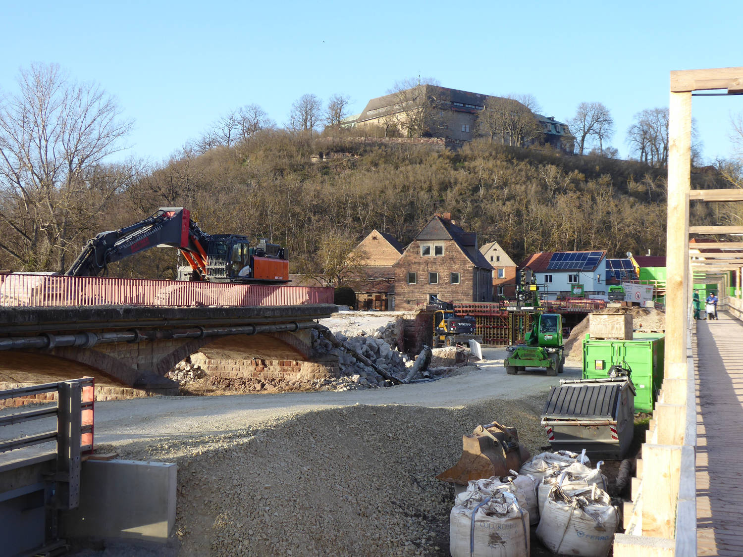Die Baustellenzufahrt wird bis in die Unstrut erweitert.
