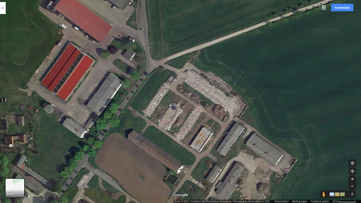 Luftbild der abgerissenen Stallungen